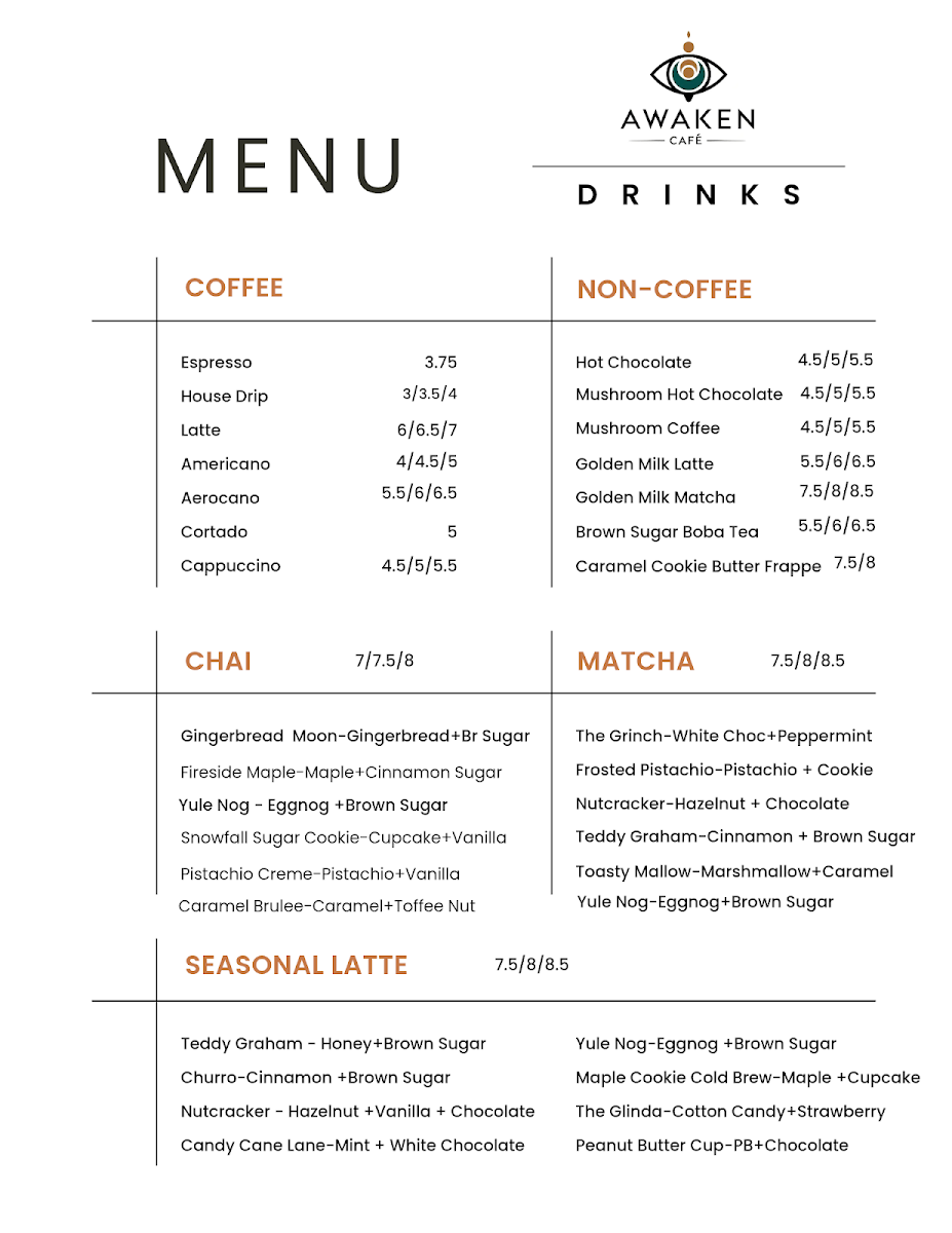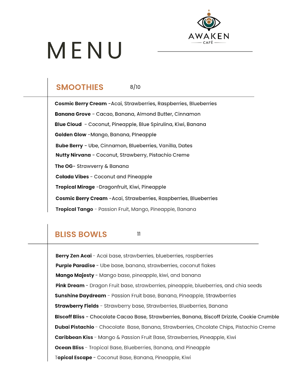Awaken Cafe Menu